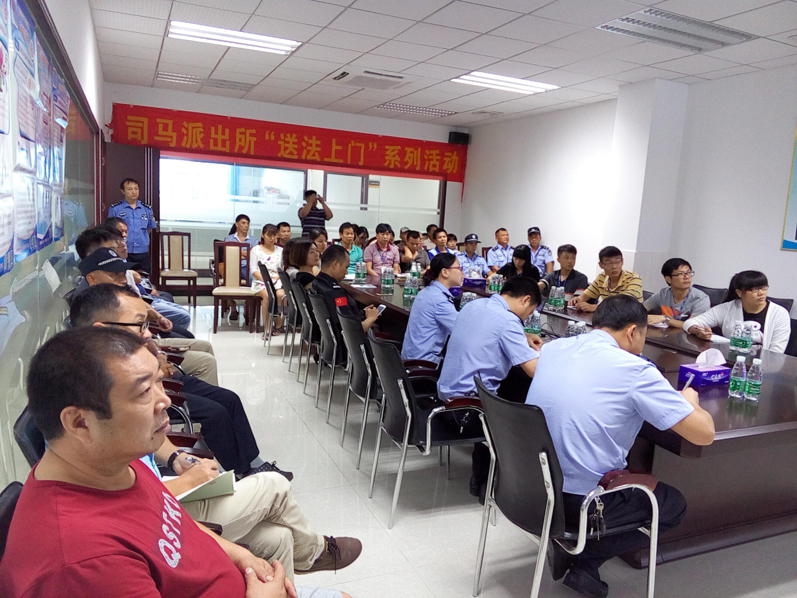为进一步提高常平环保基地工业园内员工与入驻企业员工的安全防范意识,8月6日,我司积极响应常平司马派出所号召,在荣津公司办公楼召开了一场常平司马派出所“送法上门”活动讲座。该场题为《守法用法,保护自己》的讲座由常平司马派出所警长兼副书记彭锦达主持,法制科陈茂新主任和胡继东教导员也应邀出席。