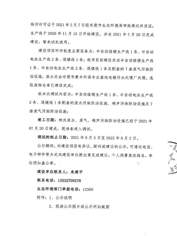 东莞剑舟科技有限公司扩建(一期)调试报告