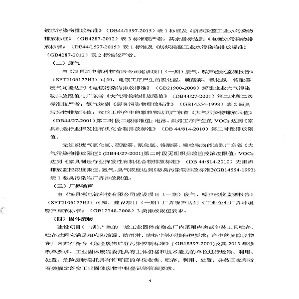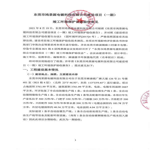 东莞市鸿景源电镀科技有限公司(一期)验收意