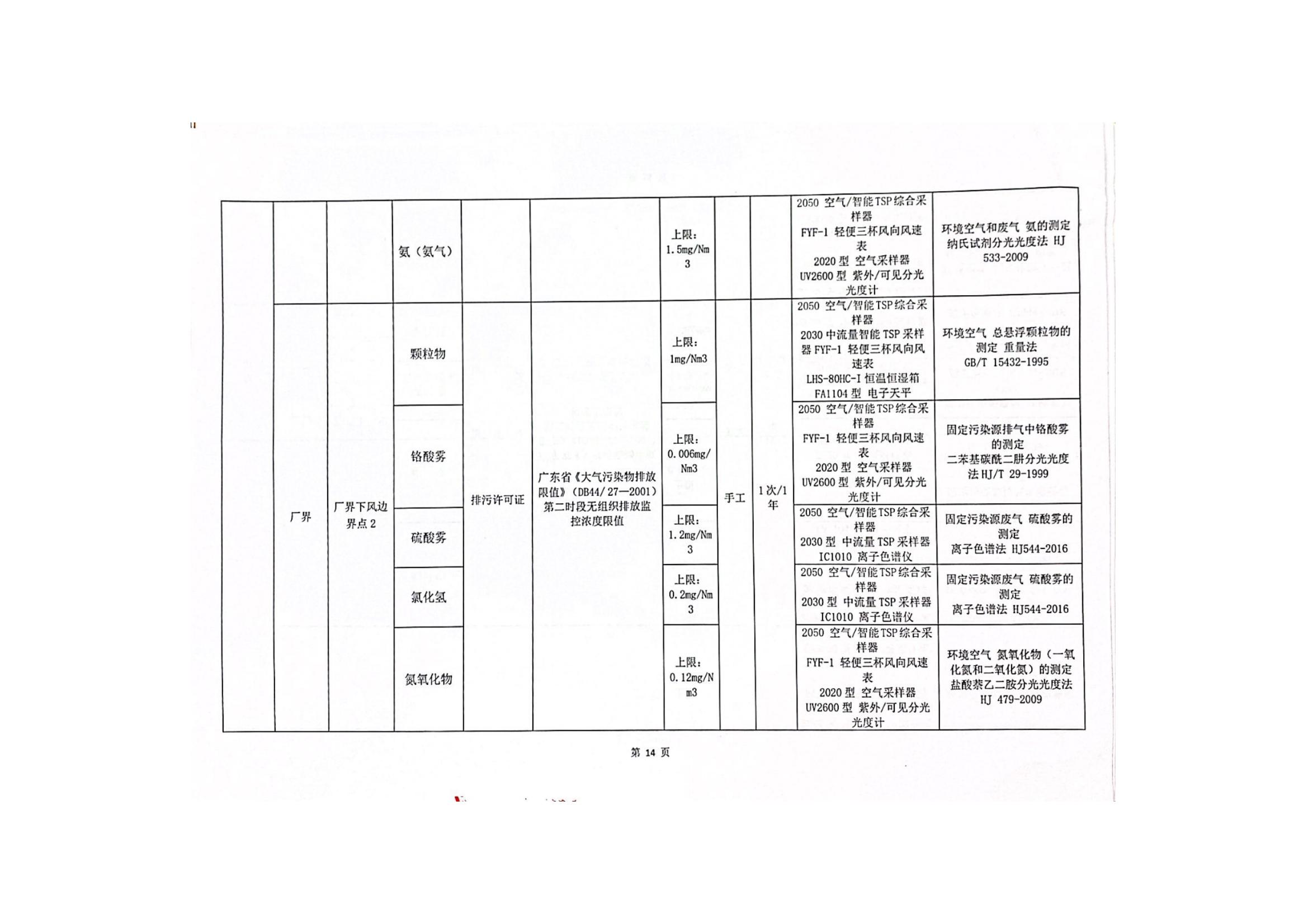 东莞市恒镁金属表面处理有限公司2022年监测方案