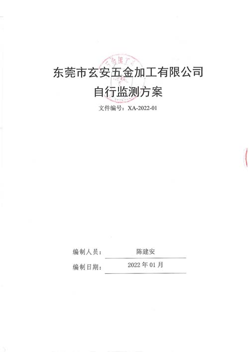 东莞市玄安五金加工有限公司2022年自行监测方案
