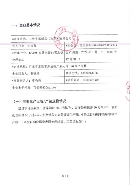 三铃金属制品(东莞)有限公司2022年监测方案