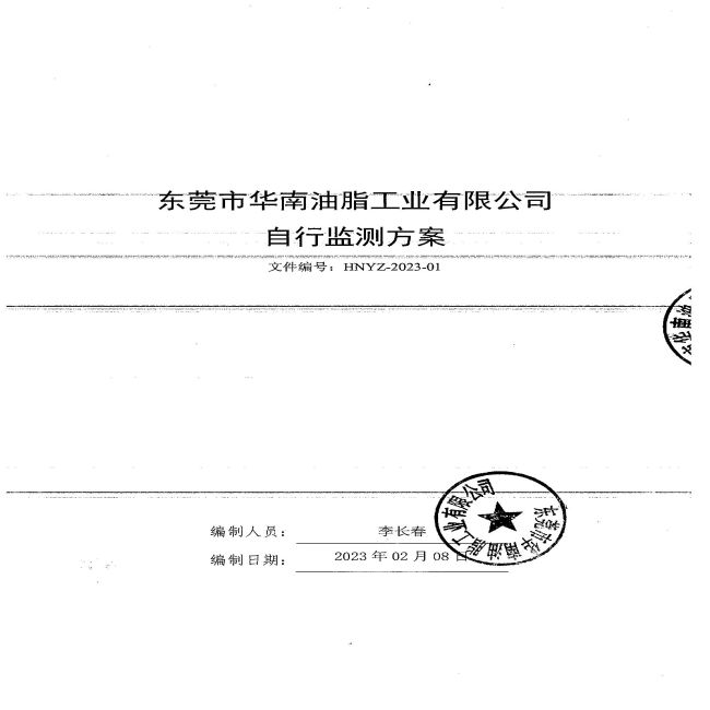 东莞市华南油脂工业有限公司2023年自行监测方案