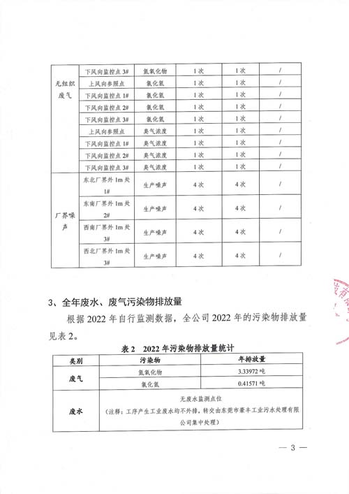 东莞市圣辉汽车科技有限公司2022年年度监测报告