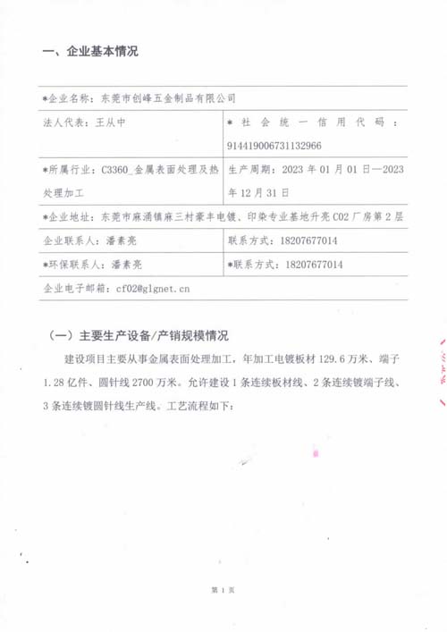 东莞市创峰五金制品有限公司2023年自行监测方案