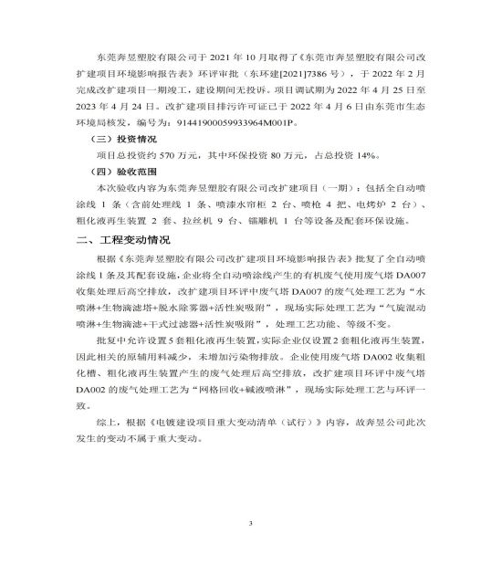 东莞奔昱塑胶有限公司改扩建(一期)验收意见