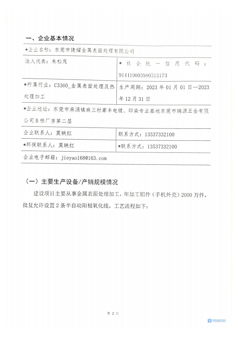 东莞市捷耀金属表面处理有限公司2023年自行监测
