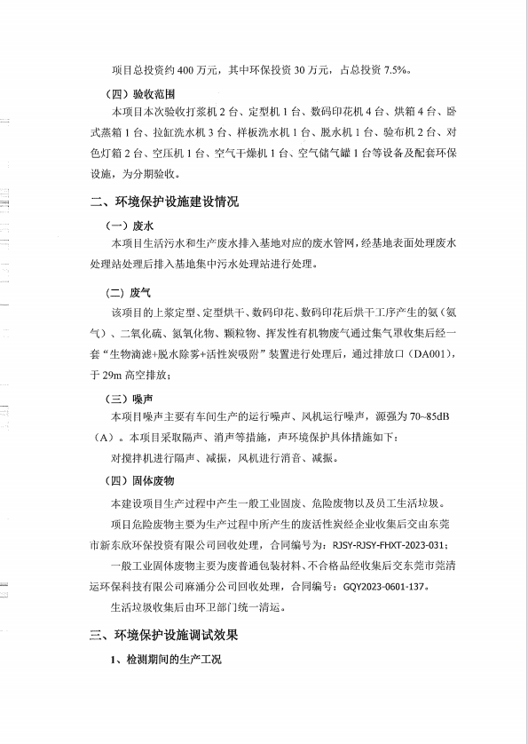 广东劲峰纺织有限公司验收意见