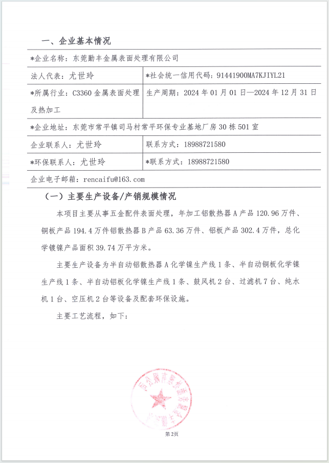 关于东莞勤丰金属表面处理有限公司自行监测方