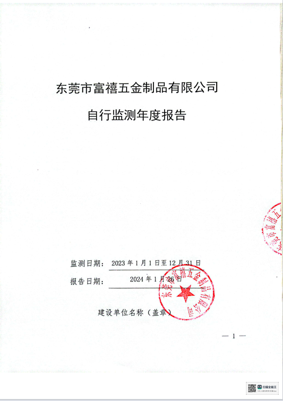 东莞市玄安五金加工有限公司2023年自行监测年报