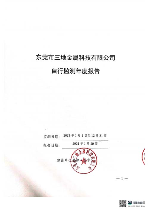 东莞市铝基五金制品有限公司自行监测年报2023年