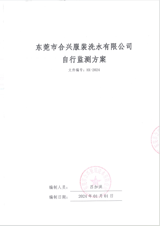 关于东莞市合兴服装洗水有限公司自行监测方案