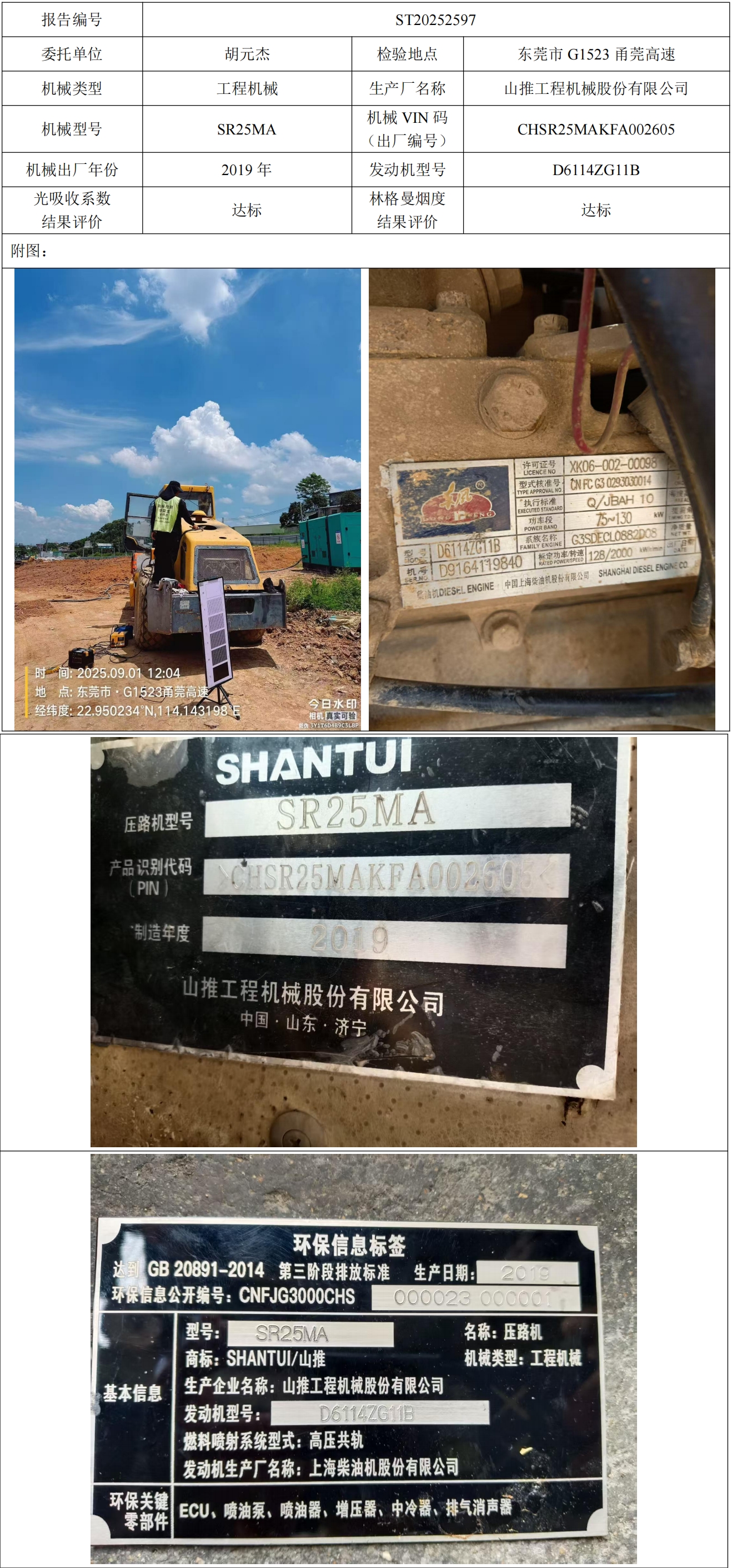 胡元杰个人压路机非道路机动车尾气检测