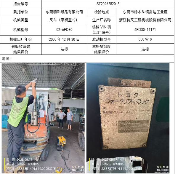 叉车(平衡重式)非道路机动车尾气检测