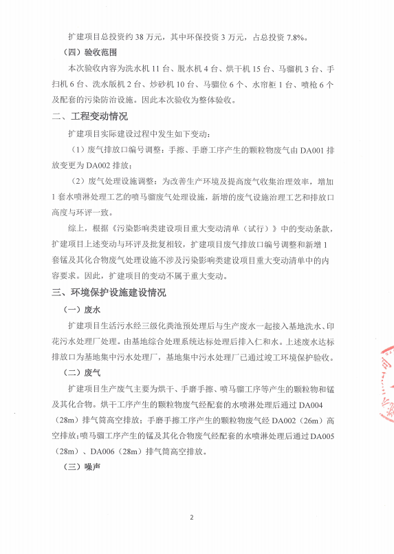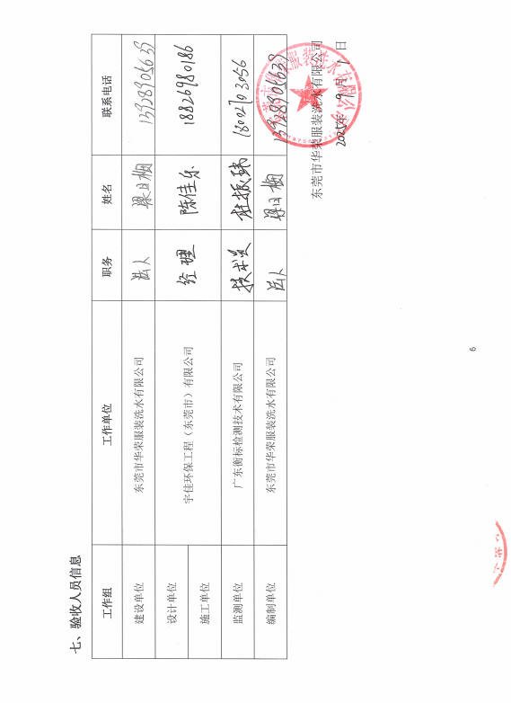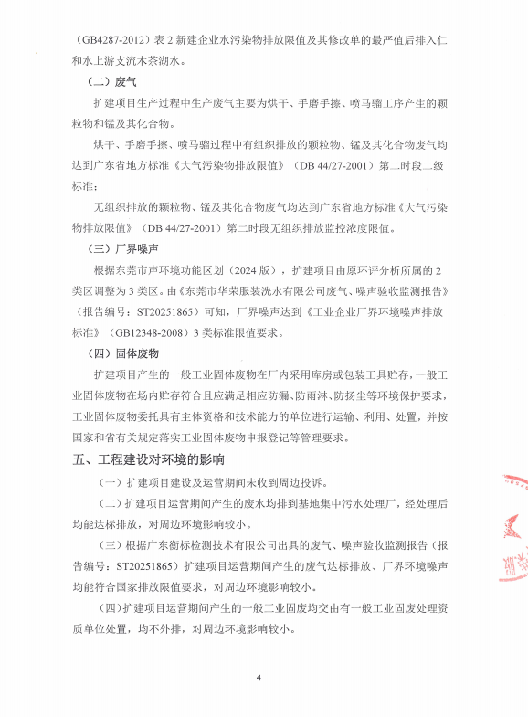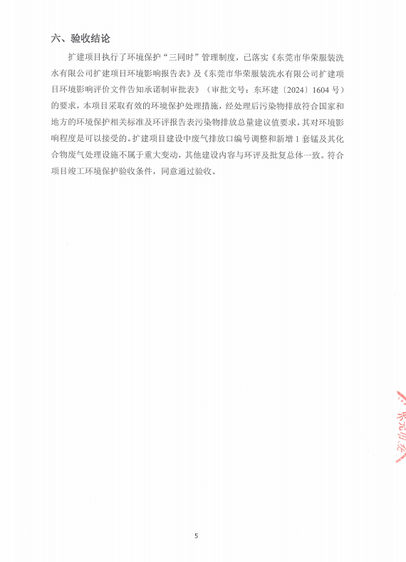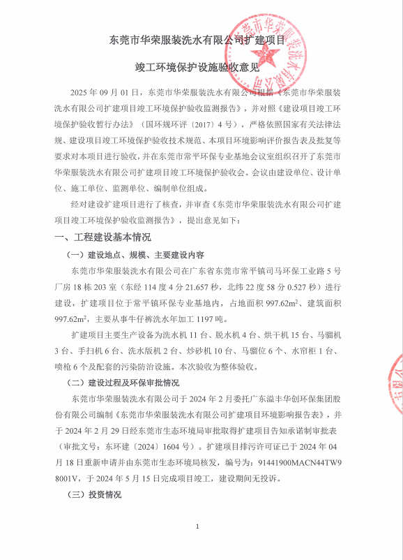东莞市华荣服装洗水有限公司扩建项目验收意见