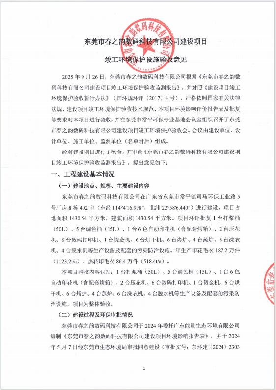 东莞市淼淼纺织科技有限公司新建项目竣工意见