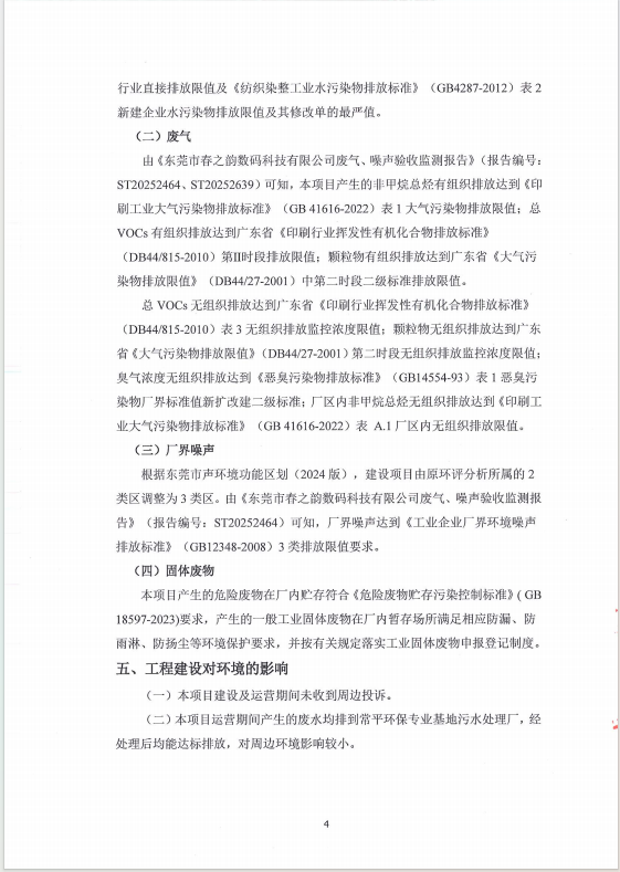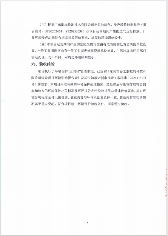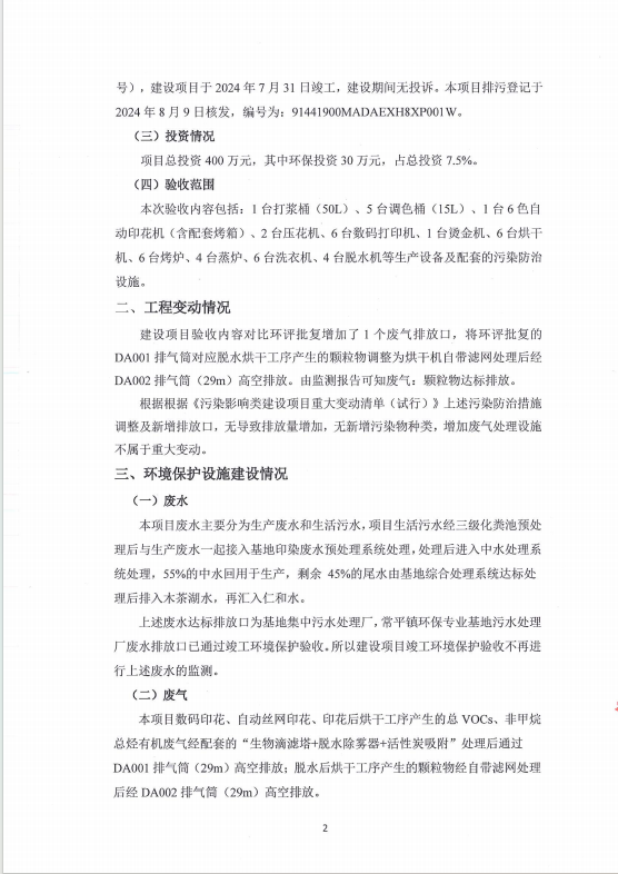 东莞市华荣服装洗水有限公司扩建项目验收意见
