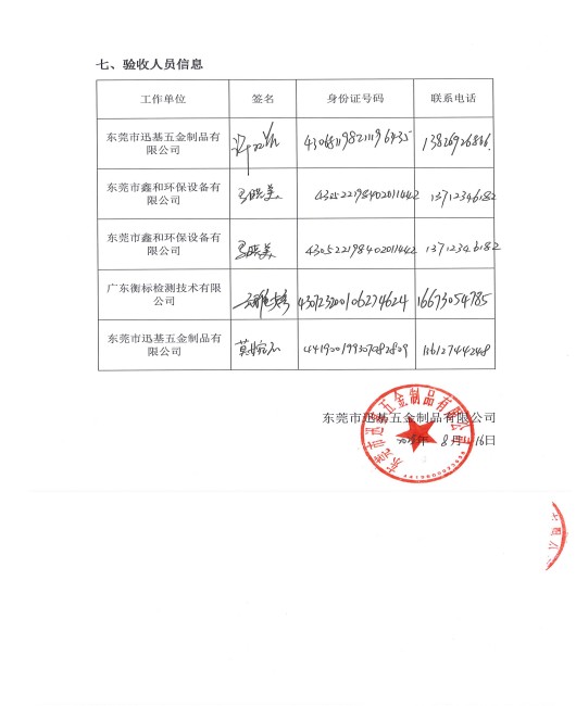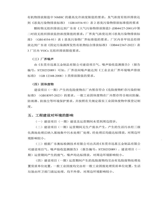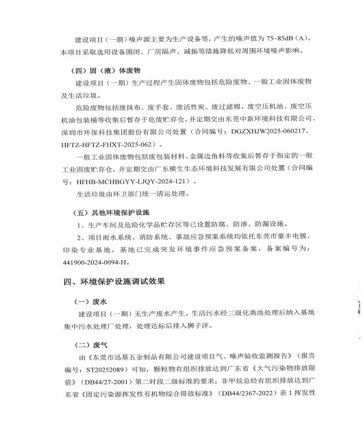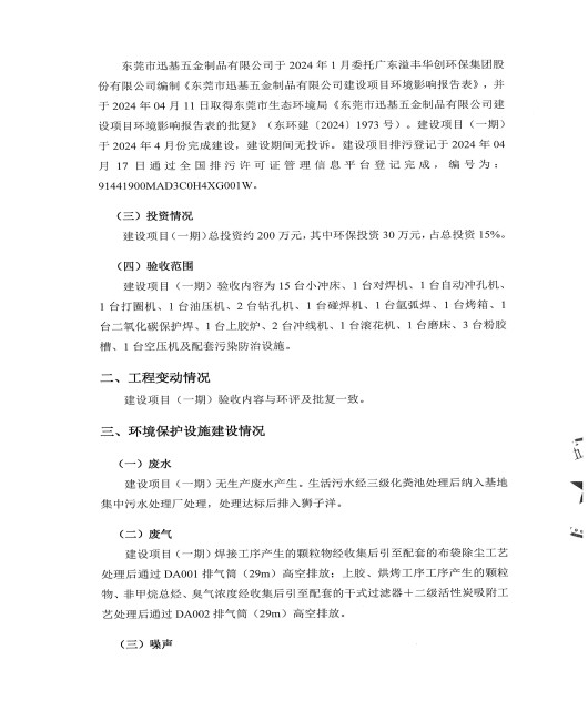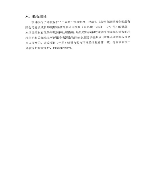 东莞市迅基五金制品有限公司环保竣工验收意见