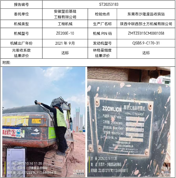 ZE200E-10液压挖掘机非道路机动车尾气检测