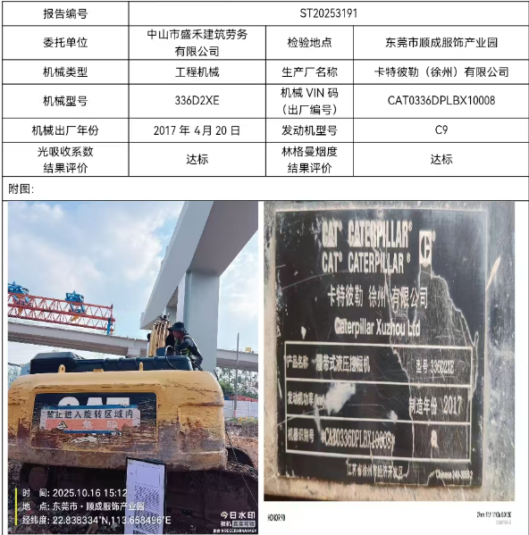 336D2XE卡特挖机非道路机动车尾气检测