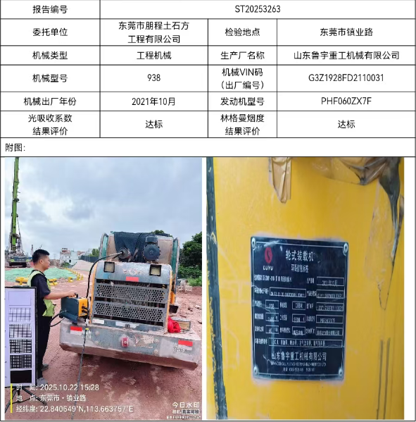 938铲车非道路机动车尾气检测