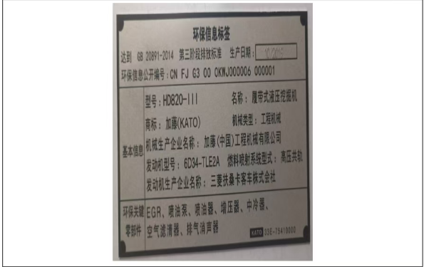 HD820-Ⅲ挖掘机非道路机动车尾气检测