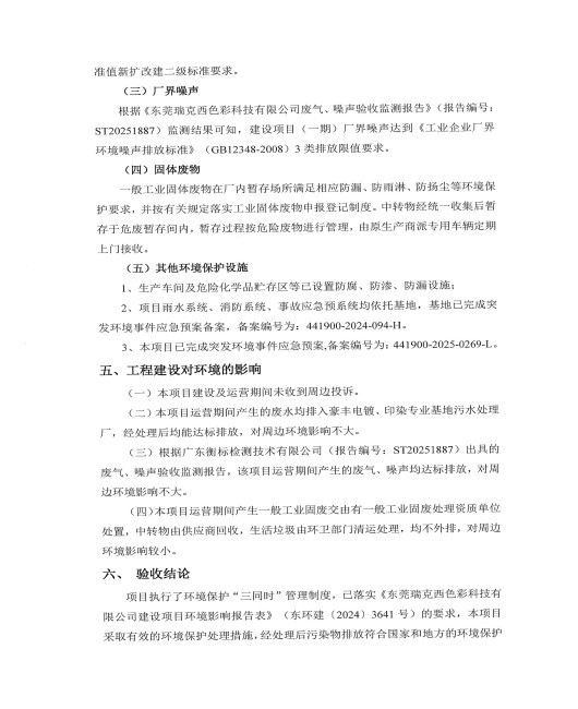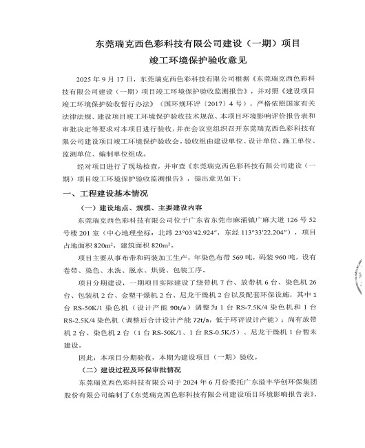 东莞瑞克西色彩科技有限公司建设(一期)验收