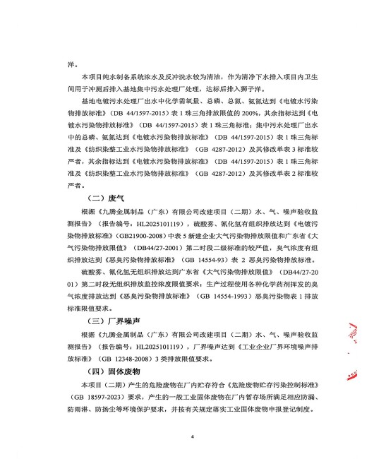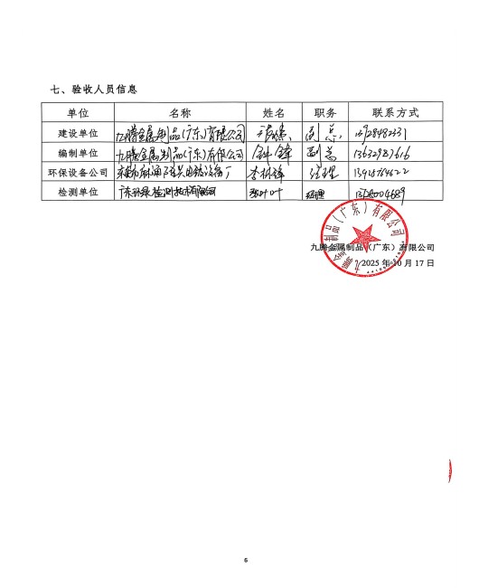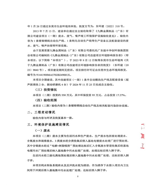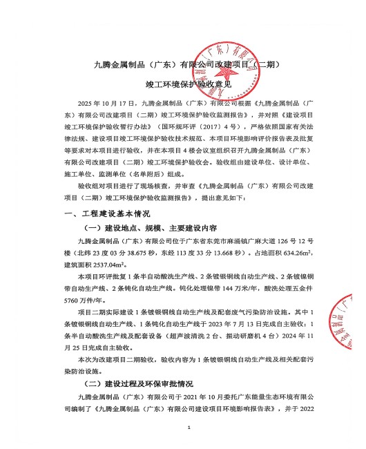 九腾金属制品(广东)有限公司改建二期验收意