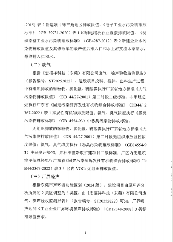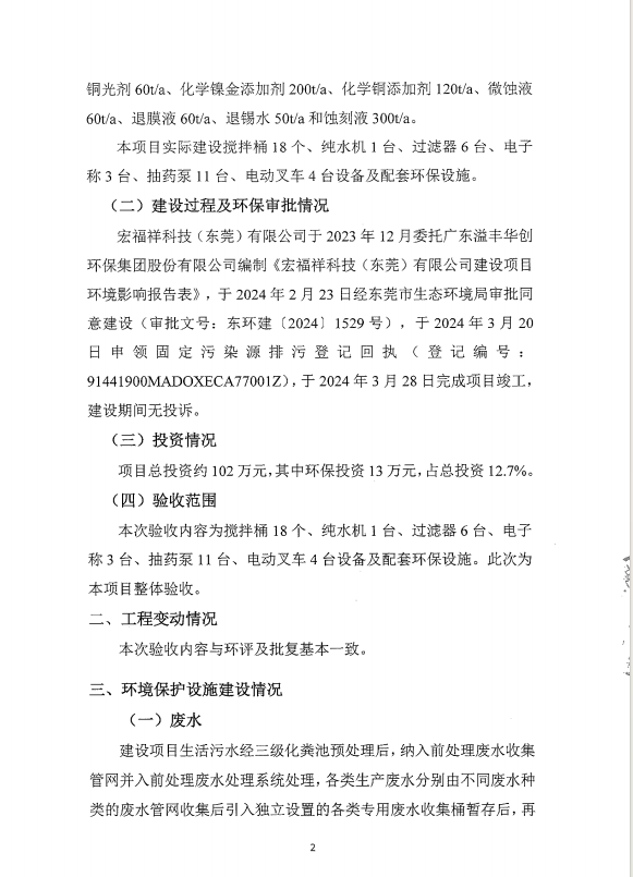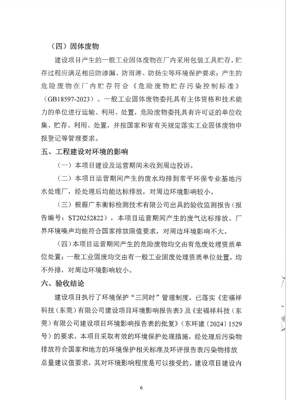 宏福祥科技(东莞)有限公司建设项目验收意见