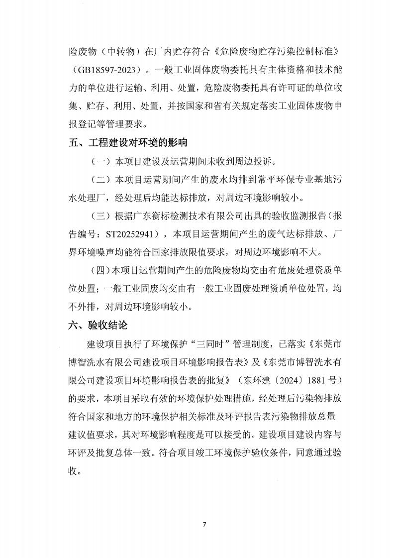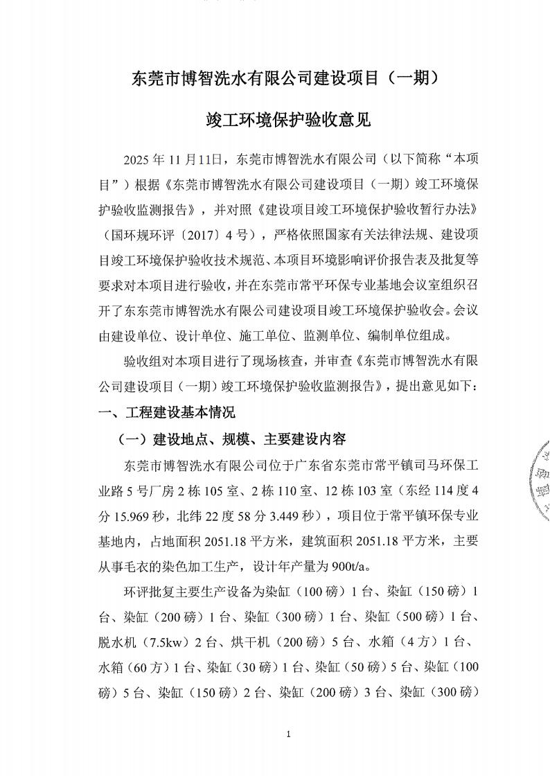 关于东莞市博智洗水有限公司的验收意见