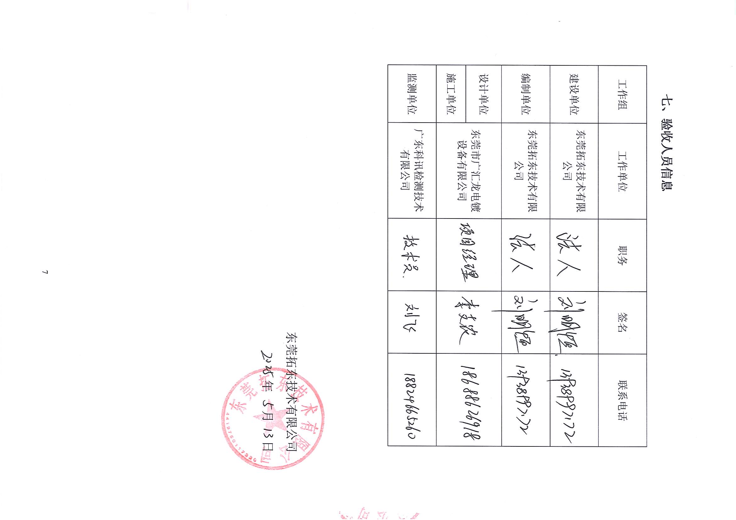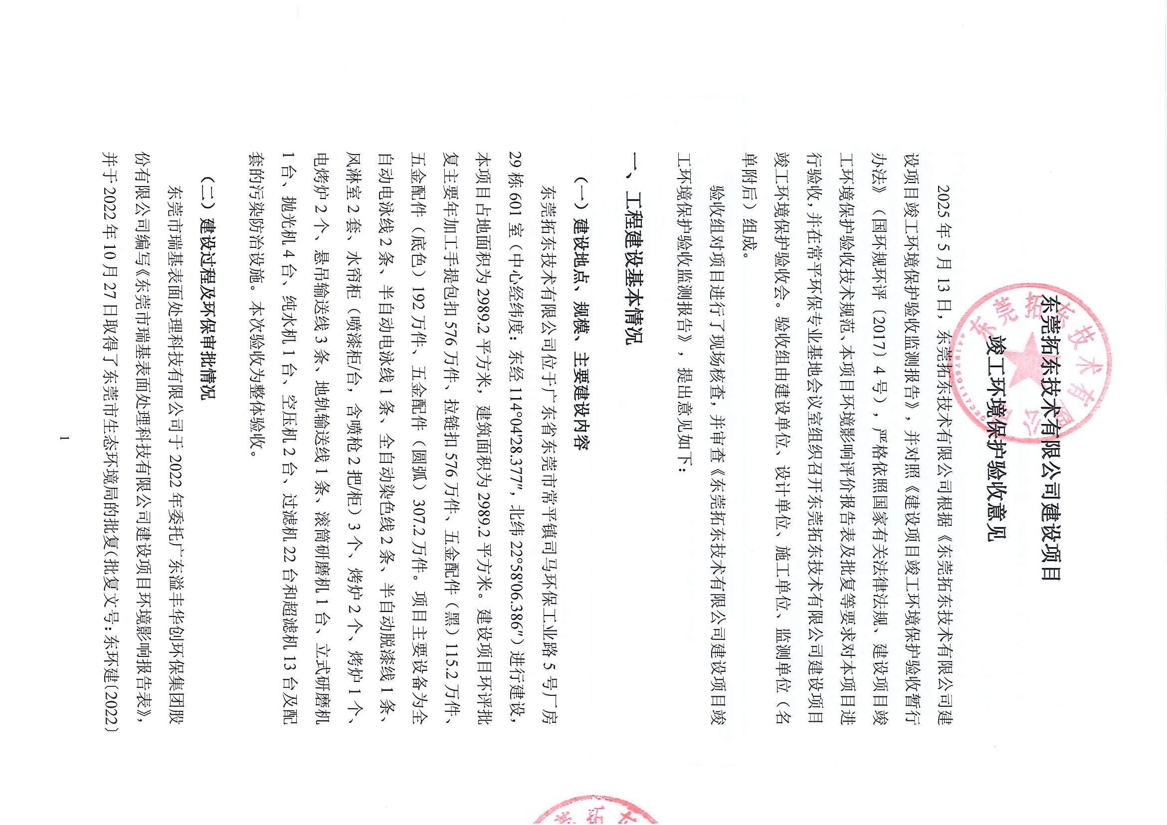 东莞拓东技术有限公司验收意见