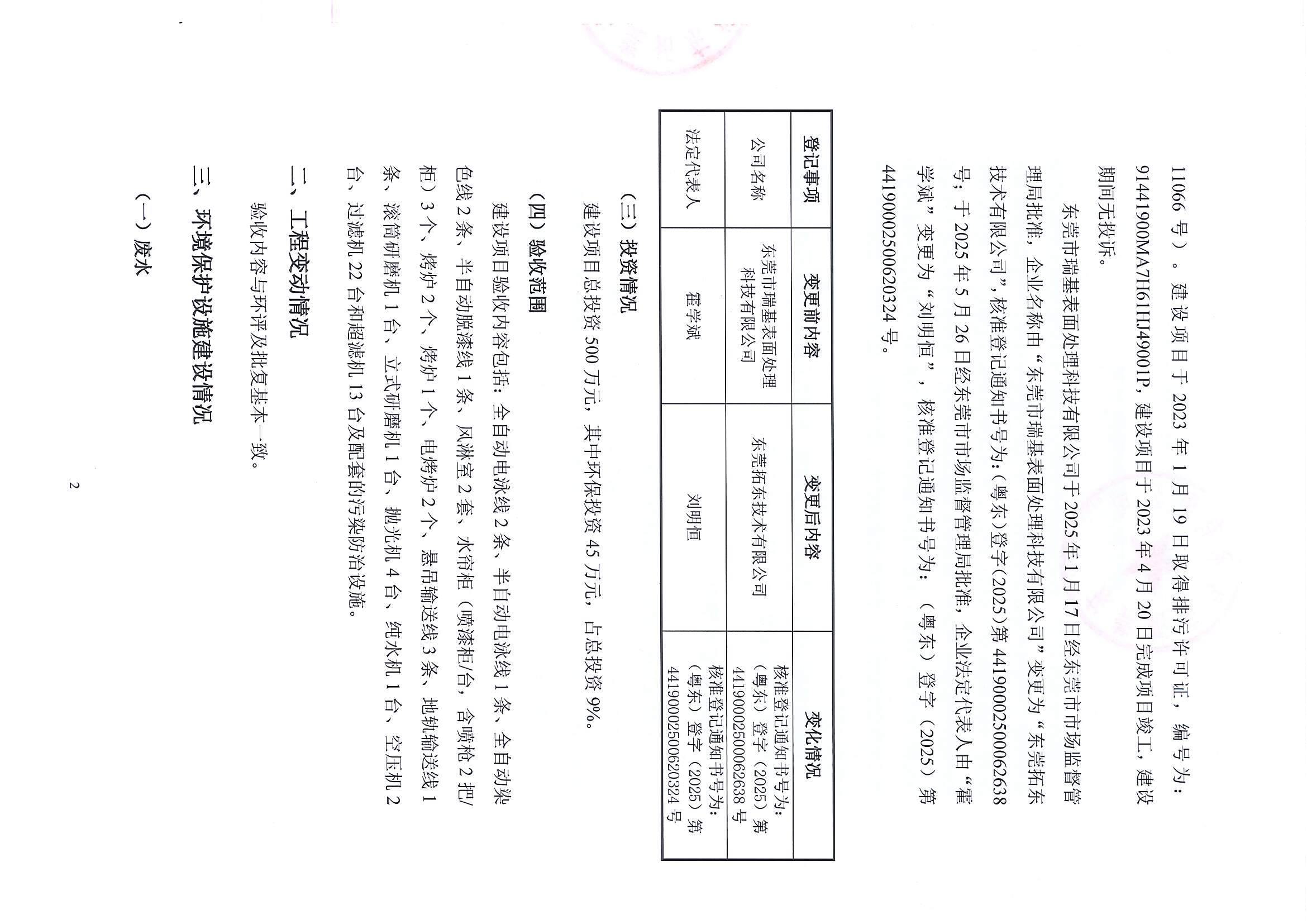 东莞振强金属表面处理材料有限公司验收意见