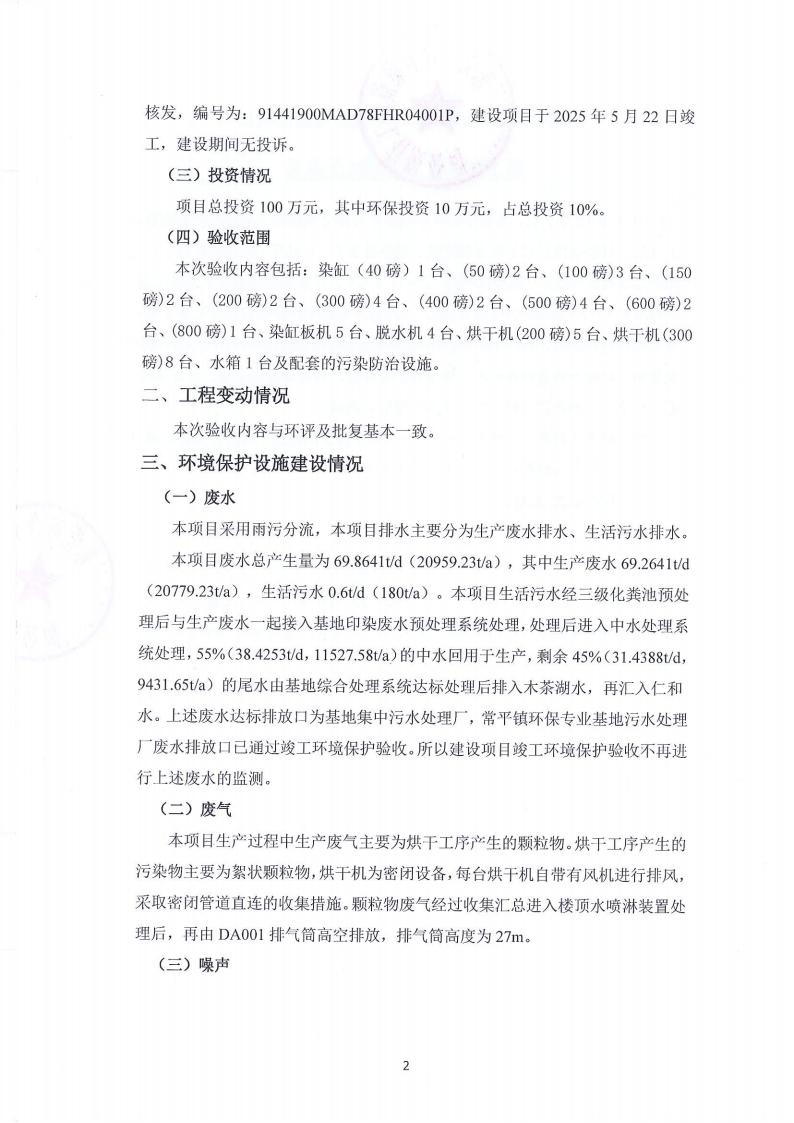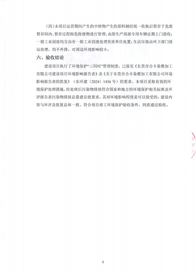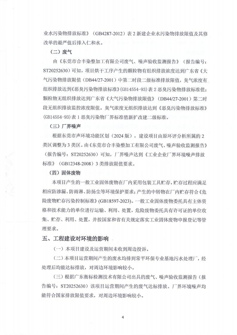 东莞市合丰染整加工有限公司环境保护验收意见