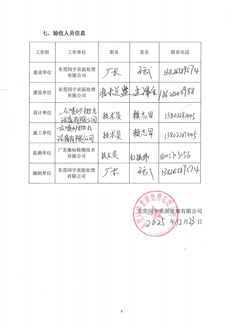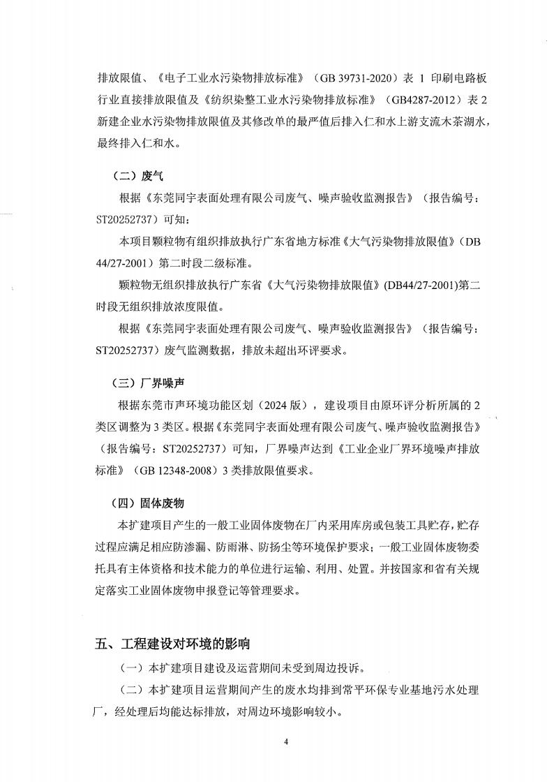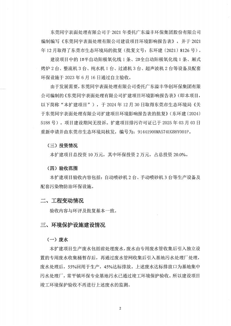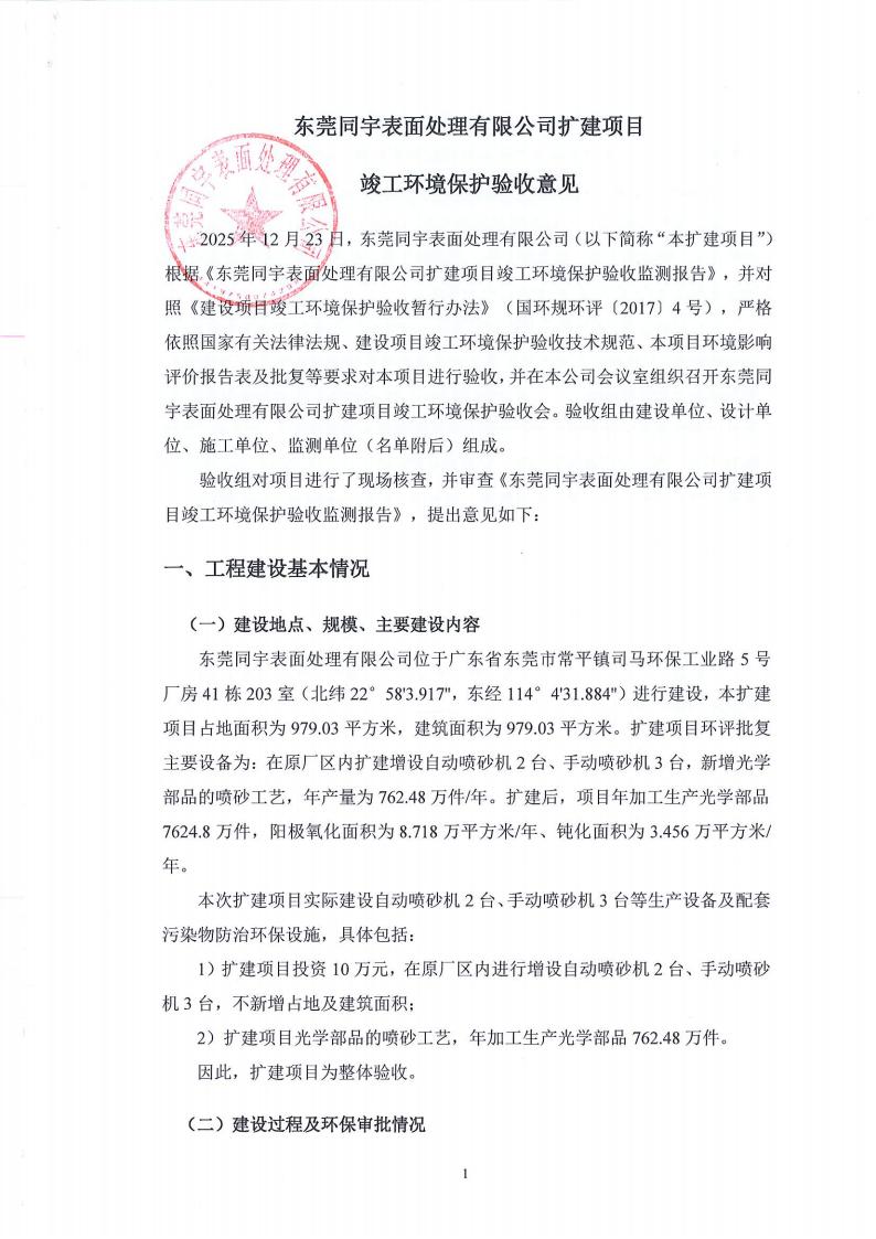 东莞同宇金属表面处理有限公司验收意见