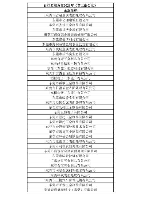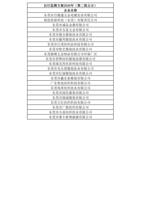 豪丰工业园2026年自行监测方案公示(第二批)