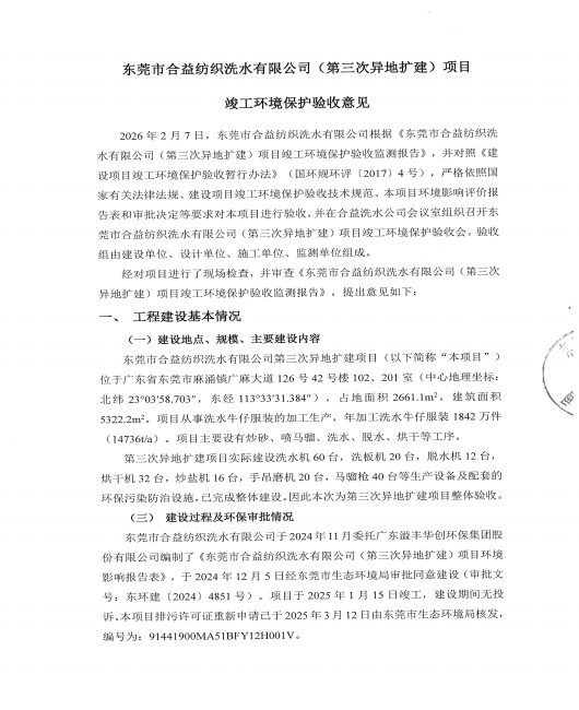 东莞市合益纺织洗水有限公司(第三次异地扩建