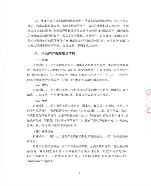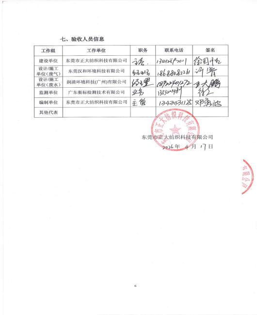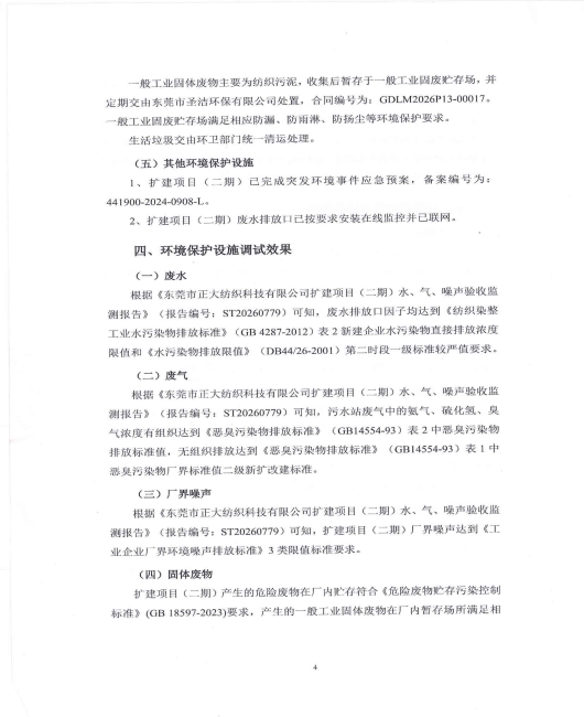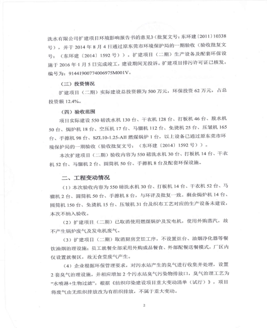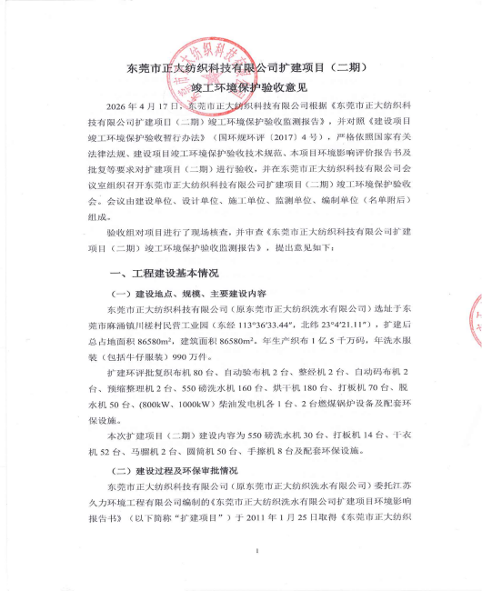 东莞市正大纺织科技有限公司扩建(二期)验收意见